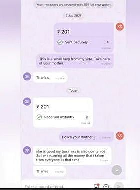 இதைக் கண்டு ஆச்சரியமடைந்த கமல் சிங், தன்னுடைய போன் பேவிலிருந்து அந்த முகம் தெரியாத நபருக்கு மெசேஜ் அனுப்பியிருக்கிறார். உங்களுடைய அம்மா எப்படி இருக்கிறார்? என கேள்வி கேட்டிருக்கிறார். அதற்கு அவர்,`` என்னுடைய அம்மா நலமாக இருக்கிறார். தற்போது என்னுடைய வியாபாரமும் நன்றாக சென்று கொண்டிருக்கிறது. அதனால் நான் என்னுடைய தாயின் சிகிச்சைக்காக மற்றவர்களிடம் வாங்கிய கடனை தற்போது திரும்ப செலுத்தி வருகிறேன்.. நன்றி'' என அனுப்பியிருக்கிறார்.
