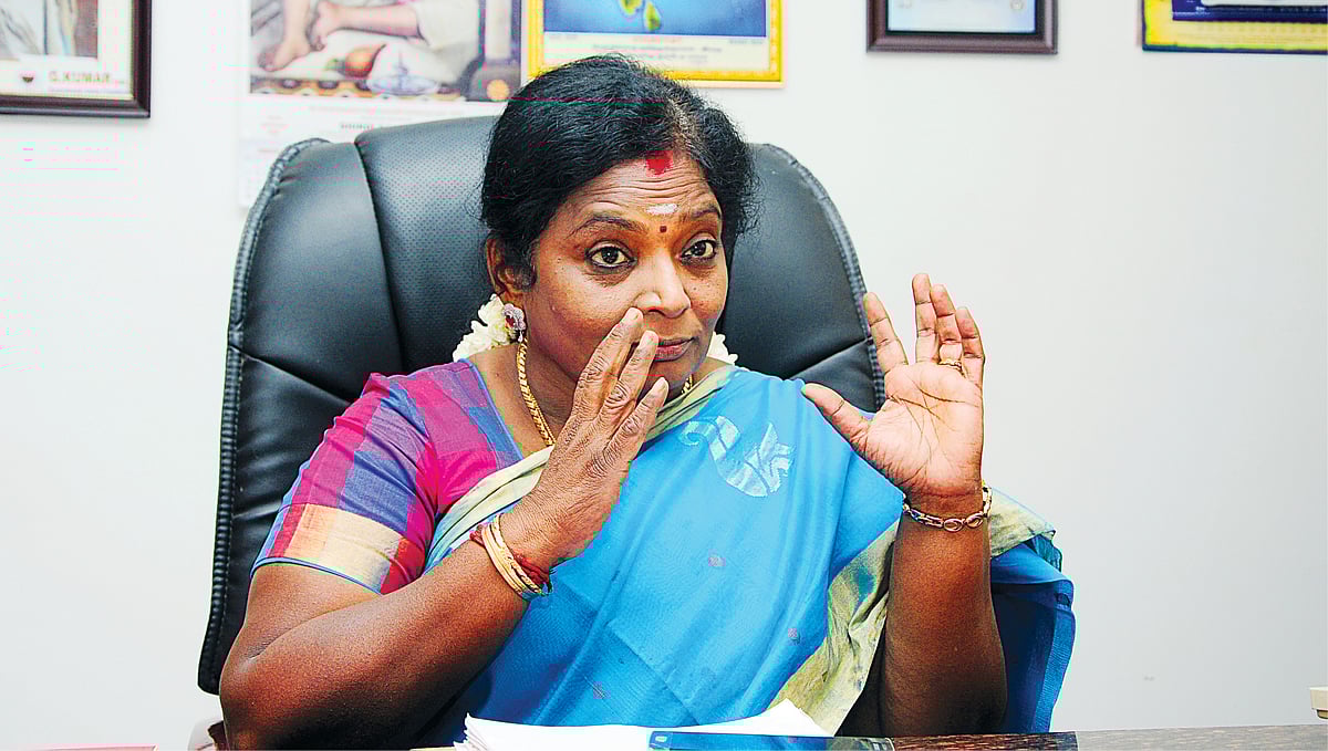 உண்மையை உரக்கச் சொல்லும் எங்களுக்கு மைக் மேனியாவும் இல்லை கேமரா மேனியாவும் இல்லை. எங்களுக்கு மைக் மேனியா என்பதைவிட உங்களுக்குத்தான் மோடி போபியா (மோடி பயம் ). எனவே இந்த பயத்தில் குளிர் ஜுரம் வந்து அடிக்கடி என்னைப்பற்றி கட்டுரை வருகிறது. தெலங்கானாவில் என்ன நடக்கிறது என்பதை ஒழுங்காக முழுமையாக தெரிந்து கொண்டு பேசுங்கள். தெலுங்கை பூர்வீகமாகக் கொண்டு வீட்டில் தெலுங்கு பேசி தமிழ் வேஷமிடும் தெலுங்கர்களுக்கு, தெலங்கானாவின் ஆளுநராக இருந்தாலும், தெலங்கானா சட்டமன்றத்தில் திருக்குறளை தமிழில் ஒலிக்கச் செய்த முழுமையான தமிழ் ரத்தம் ஓடும் தமிழச்சி நான் என்பதை ஜீரணித்து கொள்ள முடியவில்லை. யார் என்னை தமிழகத்தில் கருத்து கூற முடியாது என்று சொல்வதற்கு... யார் அந்நியர் நீங்களா? நானா? கடந்த மூன்று ஆண்டுகள் தெலங்கானா உள்ளூர் பத்திரிகைச் செய்திகளை ஆராய்ச்சி செய்து பார்த்தால் யார் நடுங்கிப் போயிருக்கிறார்கள் என்பது தெரியும். அங்கே தெலங்கானா அரசை அலறவிடுவது யார் என்பதும் தெரியும்.