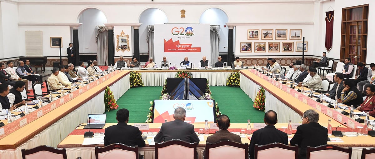 ஜி-20 அமைப்பின் இந்தியாவின் தலைமைத்துவம் குறித்து பிரதமர் நரேந்திர மோடி, " ஜி20 பெரிய வெற்றியடையச் செய்ய அனைத்துக் கட்சிகளின் ஒத்துழைப்பு தேவை. ஜி-20 தலைவர் பதவி முழு நாட்டிற்கும் சொந்தமானது, மேலும் இது இந்தியாவை உலகிற்குக் காண்பிக்கும் வாய்ப்பை வழங்குகிறது. ஜி-20 தலைவர் பதவியானது சுற்றுலா மற்றும் உள்ளூர் பொருளாதாரத்திற்கு பெரும் வாய்ப்புகளை கொண்டு வருவதால், இந்தியா மீது உலகளாவிய ஆர்வமும் ஈர்ப்பும் உள்ளது. இந்த வாய்ப்பை நாட்டின் நலனுக்காக பயன்படுத்துமாறு வலியுறுத்தியது இந்தக் கூட்டத்தின் மூலம் அறியப்படுகிறது. நிச்சயம் ஜி20 தலைவர் பதவி வழக்கமான பெரிய பெருநகரங்களுக்கு அப்பால் இந்தியாவின் சில பகுதிகளையும் வெளிப்படுத்த உதவும்" எனப் பேசினார்.