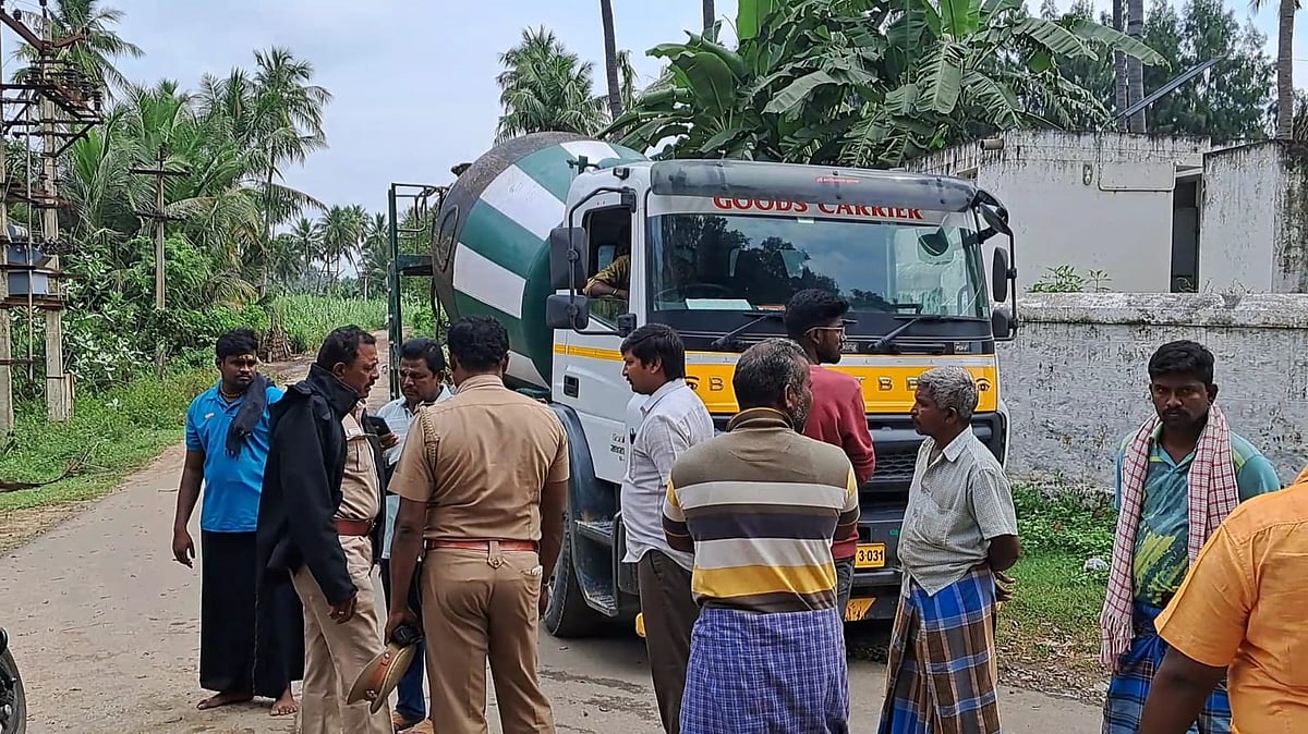 கரூர் மாவட்டம், தோட்டக்குறிச்சி பகுதியில் உள்ள காவிரி ஆற்றிலிருந்து, தொடர்ந்து மணல் கடத்தலில் சிலர் ஈடுபடுவதாக அங்குள்ள பொதுமக்கள் அதிகாரிகளுக்கு தகவல் கொடுத்து வந்தனர். எனினும், நடவடிக்கை ஏதும் எடுக்கவில்லை என்று மக்கள் குற்றம்சாட்டினர். இந்நிலையில், ஜல்லி சிமென்ட் கலவை இயந்திரம் பொருத்தப்பட்ட லாரியில் தினமும் மணல் திருடிக் கொண்டு செல்லப்படுகிறது என கூறி, அப்பகுதியை சேர்ந்த பொதுமக்கள் அந்த பகுதி வழியாக வந்த அந்த லாரியை சிறைபிடித்து போராட்டத்தில் ஈடுபட்டனர். இதனால், இதுகுறித்து தகவல் அறிந்த வேலாயுதம்பாளையம் காவல் நிலைய ஆய்வாளர் பெரியசாமி தலைமையிலான போலீஸார் சம்பவ இடத்திற்கு விரைந்து வந்தனர். பின்னர், லாரி டிரைவரிடம் விசாரணை நடத்தினர். அதோடு, பொதுப்பணித்துறை அதிகாரிகளை வரவழைத்து போலீஸார் விசாரணையை தொடர்ந்தனர். தொடர்ந்து, போலீஸார் மக்கள் சிறைப்பிடித்த அந்த ஜல்லி சிமென்ட் கலவை கொண்டு செல்லும் லாரி மீது ஏறி பார்த்தபோது, கலவை இயந்திரத்தின் உள்ளே நிறைய மணல் இருப்பது தெரியவந்தது.