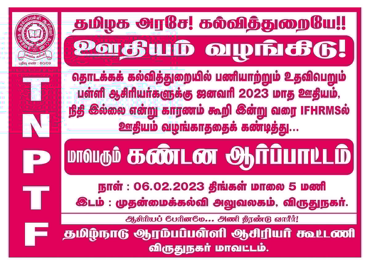 மாநிலத்தில் சில இடங்களில், 15-ம் தேதிக்கு முன்னர் பதிவிட்டவர்களுக்கு மட்டும் சம்பளம் வரவு வைக்கப்பட்டுள்ளதாக தகவல் வெளியாகி உள்ளது. தமிழகம் முழுவதும் பல மாவட்டங்களில் இந்த பிரச்னை எழுந்துள்ள நிலையில் அரசு உதவி பெறும் தனியார் பள்ளி ஆசிரியர்-அலுவலர் கூட்டமைப்பினர், தமிழ்நாடு ஆரம்பப்பள்ளி ஆசிரியர் கூட்டணி போன்ற அமைப்புகள் போராட்டங்களை அறிவித்துள்ளன.