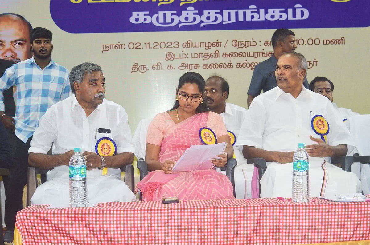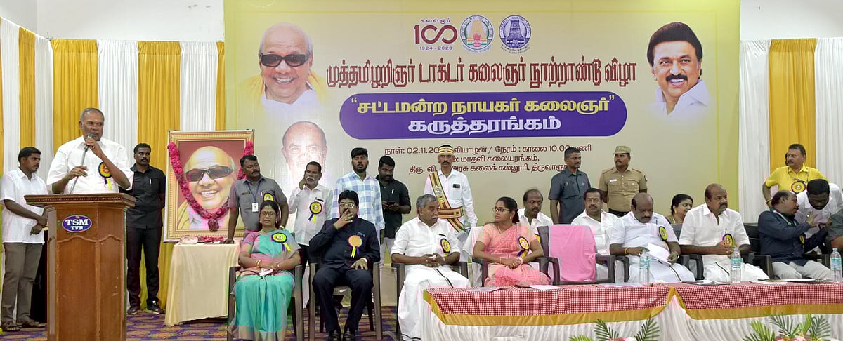திருவாரூரில் அமைந்திருக்கும் திரு.வி.க அரசு கலைக் கல்லூரியில், `சட்டமன்ற நாயகன் கலைஞர்’ என்னும் தலைப்பில் கருத்தரங்கம் நடைபெற்றது. இதில் தமிழ்நாடு சட்டப்பேரவை தலைவர் அப்பாவு கலந்துகொண்டு சிறப்புரையாற்றினார். மேலும், அரசு தலைமை கொறடா கோவை செழியன், திருவாரூர் சட்டமன்றத் தொகுதி உறுப்பினர் பூண்டி கலைவாணன், திருவாரூர் மாவட்ட ஆட்சியர் சாருஸ்ரீ ஆகியோர் கலந்துகொண்டு தமிழக முன்னாள் முதல்வர் கருணாநிதி பற்றிய தங்களது கருத்துகளைப் பேசினர். கருத்தரங்கில் திரு.வி.க கல்லூரியைச் சேர்ந்த சுமார் 500-க்கும் மேற்பட்ட மாணவர்கள் கலந்துகொண்டனர்.