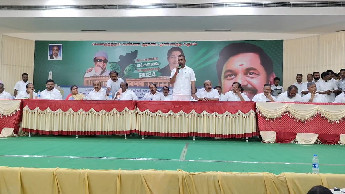 கோவை மாவட்டம், சின்னியம்பாளையம் அருகேயுள்ள பிருந்தாவன் திருமண மண்டபத்தில், அ.தி.மு.க-வின் தேர்தல் அறிக்கை தயாரிப்பின் ஒரு பகுதியாக, தொழில் அமைப்புகளுடன் கலந்தாலோசனைக் கூட்டம் நடைபெற்றது. இதில் அ.தி.மு.க முன்னாள் அமைச்சர்கள் நத்தம் விஸ்வநாதன், செங்கோட்டையன், வேலுமணி, ஜெயக்குமார் உள்ளிட்டோர் கலந்துகொண்டனர்.